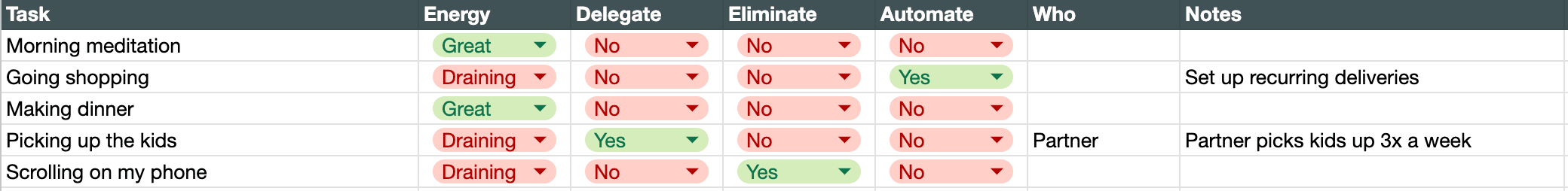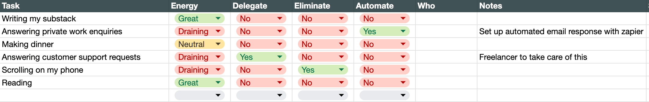 3. Decide whether to delegate, eliminate or automate the draining tasks
